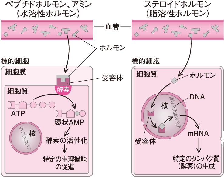 ホルモンは「アミノ酸」もしくは「コレステロール」からつくられます。多くのホルモンはアミノ酸系で、水に溶けやすく、すぐに反応します。