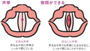 会話をすることが減ったため、のどや声帯を使うことも減り、のどが運動不足に陥っていることです。手足などの筋肉を使わないと弱っていくように、のどの筋肉も使わなければ衰えていくので、動かして鍛えることが必要です。