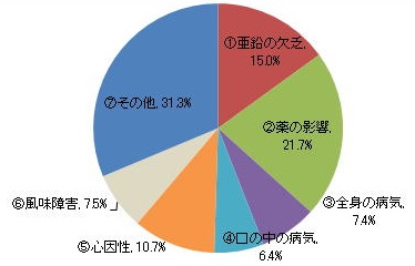 また、軟らかい食べ物が好まれて、咀嚼回数が減って食べ物の味物質を届ける唾液が減って、味蕾が働き難くなっていることも影響していると思われます。特に若い人の味覚障害が増えているのは、咀嚼回数低下とマスク装着の影響が大きいと言われています。そして、ストレスの蓄積などによって味覚を脳に伝える神経や、味覚を判断する脳そのものに何らかの異常が起こるために生じる“心因性の味覚障害”も多く確認されています。適度な運動で、ストレスを解消し、食事はバランス良く、咀嚼回数を増やしていただきたいと思います。