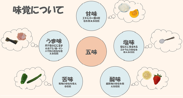 又、味と言うと辛さを思い浮かべる人もいるかもしれませんが、「辛さ」は痛覚や温度覚で感じる物なので味覚ではありません。