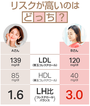 そして、HDLとLDLは別々に考えるのではなく、両方のバランスが重要とされ、脂質異常症の診断では「LH比」が重視されるようなってきています。また、中性脂肪が高いと指摘される方は多いですが、体を動かしたり体温を保ったりするエネルギー源として使われ、生命維持に必要なものです。増え過ぎると体脂肪となって内臓や皮下に蓄積されてしまって身体の色々な不具合に繋がります。生活習慣の乱れとコレステロールの乱れはリンクしていますので、身体を動かすことで改善に努めていただければと思います。また、筋肉には血中脂肪を分解する作用も大きいので、身体を動かすことが正常な身体を維持することになります。
