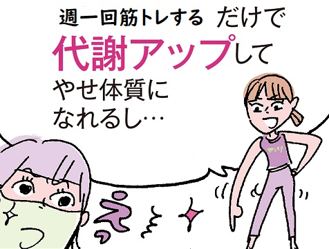 早足でのウォーキングを45分間するのと同等のエネルギー消費量になります。つまり、筋トレで代謝を上げることは年齢に関係なく可能なので、健康的にリバウンドのないダイエットが可能になります。食べても太らない体を作るためにも筋トレを行って、太らない体になってくださいね。