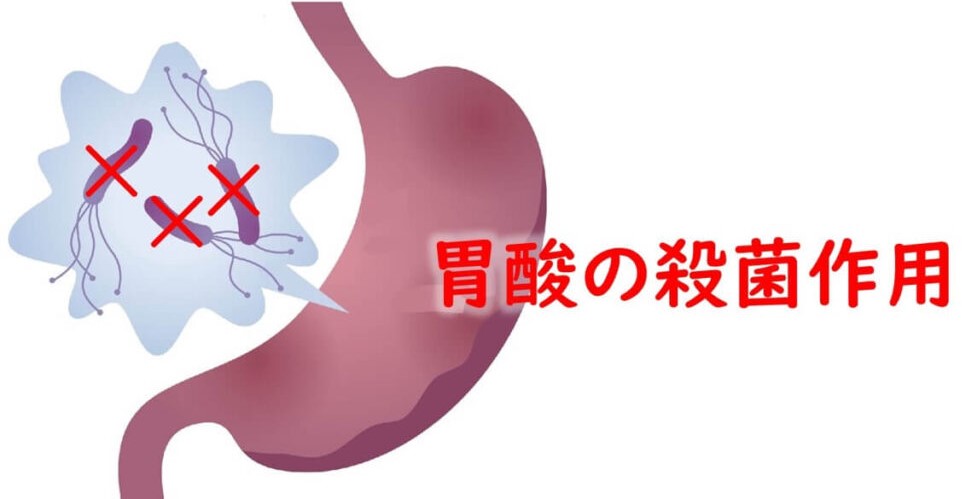 1つ目は、よく噛むことにより食べ物の表面積が増え胃液との接触機会が増えることです。胃液は強酸性のため殺菌作用があるので接触機会が増えることにより殺菌効果が高まるとされています。