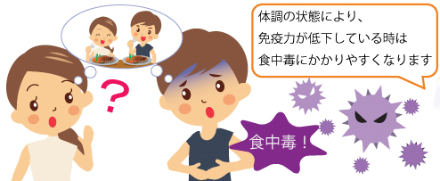 また、食中毒の予防には、体温を下げて免疫力を落さないようにすることが大切です。普段から適度な運動を心掛けて免疫力を低くしないように意識して旬のものを美味しく楽しんでください。